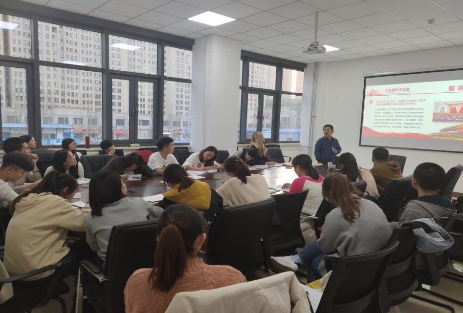 2019年11月15日下午5:00,suncitygroup太阳集团副书记,副经理罗宁在明德楼E206会议室,带领全体员工党员及本学期发展党员认真领悟学习党的十九届四中全会内容。