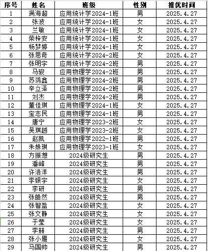 根据《suncitygroup太阳集团推荐优秀团员作为入党积极分子工作的实施细则》文件相关规定,经个人申报,班主任、团支书审核,团支部开展民主会议,suncitygroup太阳集团团委最终审核决定,拟推荐满海超等29名同学为2024——2025学年第二学期推荐优秀团员为入党积极分子,公示日期截止4月29日晚20:00。