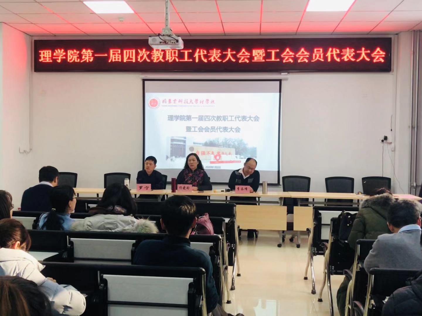 2020年1月2日下午2:30,suncitygroup太阳集团在明德楼E205会议室召开了suncitygroup太阳集团第一届四次教职工代表大会暨工会会员代表大会。党总支书记杨晓玲、副经理李永峰、党总支副书记、副经理罗宁以及公司全体教职工出席大会。会议由党总支书记杨晓玲主持。