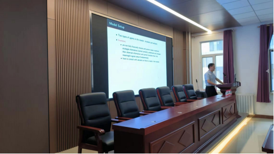 娄有成副研究员对理性预期均衡理论进行了介绍,重点从投资者、投资顾问、REE模型及其优化等方面进行了详细的讲解。随后,老师们与娄有成副研究员展开了深入的交流,本次讲座拓展了公司教师的学术研究视野,进一步打开了学术创新研究的思路和方法。